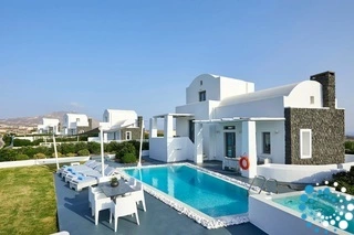 Dans la partie sud de l’île, la Villa Majestic se distingue par une vue remarquable sur la Caldera mondialement connue. Située à la périphérie d’Akrotiri, cette retraite luxueuse garantit un accès facile et direct au site archéologique homonyme, l’un des plus importants établissements préhistoriques de la Méditerranée.