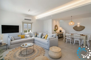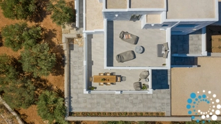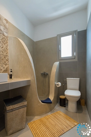 Le design architectural et la qualité de construction de Marpissa Nest, ainsi que sa vue majestueuse, font de cette propriété la maison parfaite pour vos vacances. Dans le hall principal, il y a un salon spacieux, agencé de manière unique pour que vous puissiez toujours profiter de la vue majestueuse, à côté de l’espace repas extérieur. Au même niveau, se trouve une cuisine ouverte entièrement équipée avec un coin repas. De plus, il y a un petit WC et une chambre double avec salle de bain attenante.