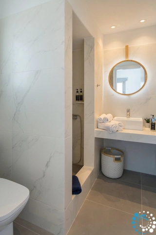 À l’étage supérieur, vous trouverez deux autres chambres doubles, toutes avec salles de bains attenantes. Enfin, la terrasse relie ces deux chambres et dispose de confortables lounges pour se détendre et profiter de la vue toute la journée.