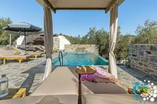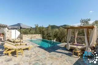 Villa Mediterraneo is ideally located just 1.8 kilometres from Skopelos Port, approximately a twenty-minute walk, allowing easy access to the island’s beaches, traditional tavernas and the picturesque town. Free private parking is available on site. The villa comfortably accommodates up to six guests, making it an ideal choice for families or small groups looking to experience Skopelos in a setting that blends authenticity, privacy and understated luxury.