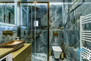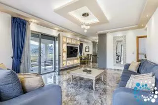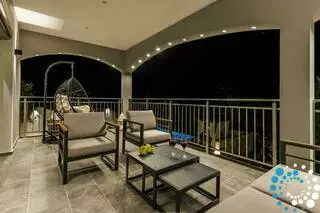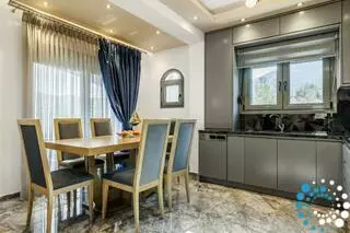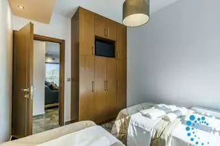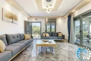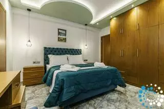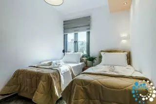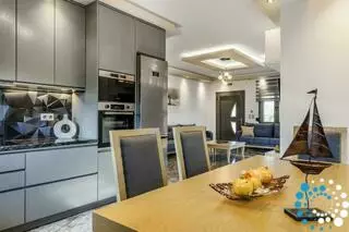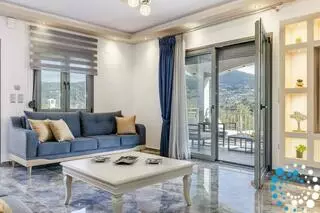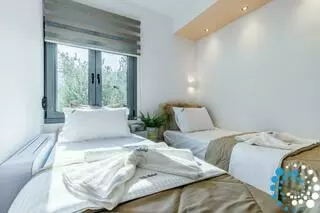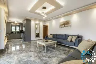 The residence features three refined bedrooms, each with its own en-suite bathroom and air conditioning, along with a spacious living area and a fully equipped kitchen designed for effortless everyday living. Two of the bedrooms are furnished with king-size double beds, while the third offers two single beds. The living room also includes a sofa bed for additional flexibility when needed.
