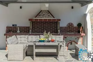 At the heart of the outdoor area lies a private infinity swimming pool with a waterfall feature, surrounded by sun loungers and a generous sun deck. Guests can enjoy alfresco meals on the covered dining terrace equipped with a barbecue, refresh under the outdoor shower, or simply relax within the beautifully maintained walled garden. A truly distinctive element of the property is its private on-site chapel, available for intimate ceremonies such as weddings or baptisms by prior arrangement.