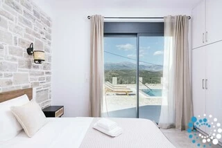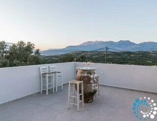 À l’extérieur, la villa dispose d’une piscine privée entourée de transats, parfaite pour profiter pleinement des journées ensoleillées en toute intimité. Des espaces salon et repas en plein air offrent une vue panoramique spectaculaire sur la plaine de la Messara et les montagnes de l’Ida. Un barbecue électrique est à votre disposition pour des soirées détendues et des repas conviviaux en extérieur, tandis que la terrasse et le jardin constituent un cadre idéal pour admirer de superbes couchers de soleil et apprécier le calme environnant.