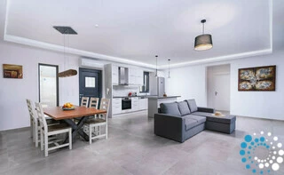 À l’intérieur, Villa Messara propose une cuisine entièrement équipée avec des appareils modernes, dont un lave-vaisselle pour un nettoyage facile après les repas et une machine à laver, particulièrement pratique pour les séjours prolongés. Les espaces salon et salle à manger sont confortables et pensés pour la détente, avec la climatisation et le Wi-Fi gratuit dans toute la villa. Les intérieurs lumineux et ouverts créent une atmosphère chaleureuse et accueillante, propice au repos.