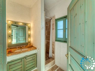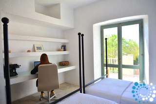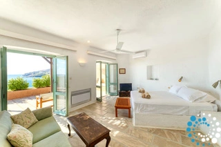 La propriété se trouve à seulement une minute à pied d’une plage rocheuse non aménagée et à environ 400 mètres d’une plage de sable aménagée. Ermoupoli, le port et la ville principale de Syros, est située à environ 12 kilomètres et se rejoint en 15 minutes en voiture.