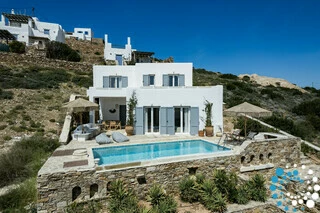 La Villa Ninfea offre des vues imprenables sur la baie de Saint-Georges, alliant élégance raffinée, confort moderne et charme intemporel de l’architecture cycladique. Des accents en bois chaleureux et des tons olive sophistiqués créent une atmosphère accueillante et stylée, tandis que la piscine privée offre un havre de paix pour profiter du cadre exceptionnel.