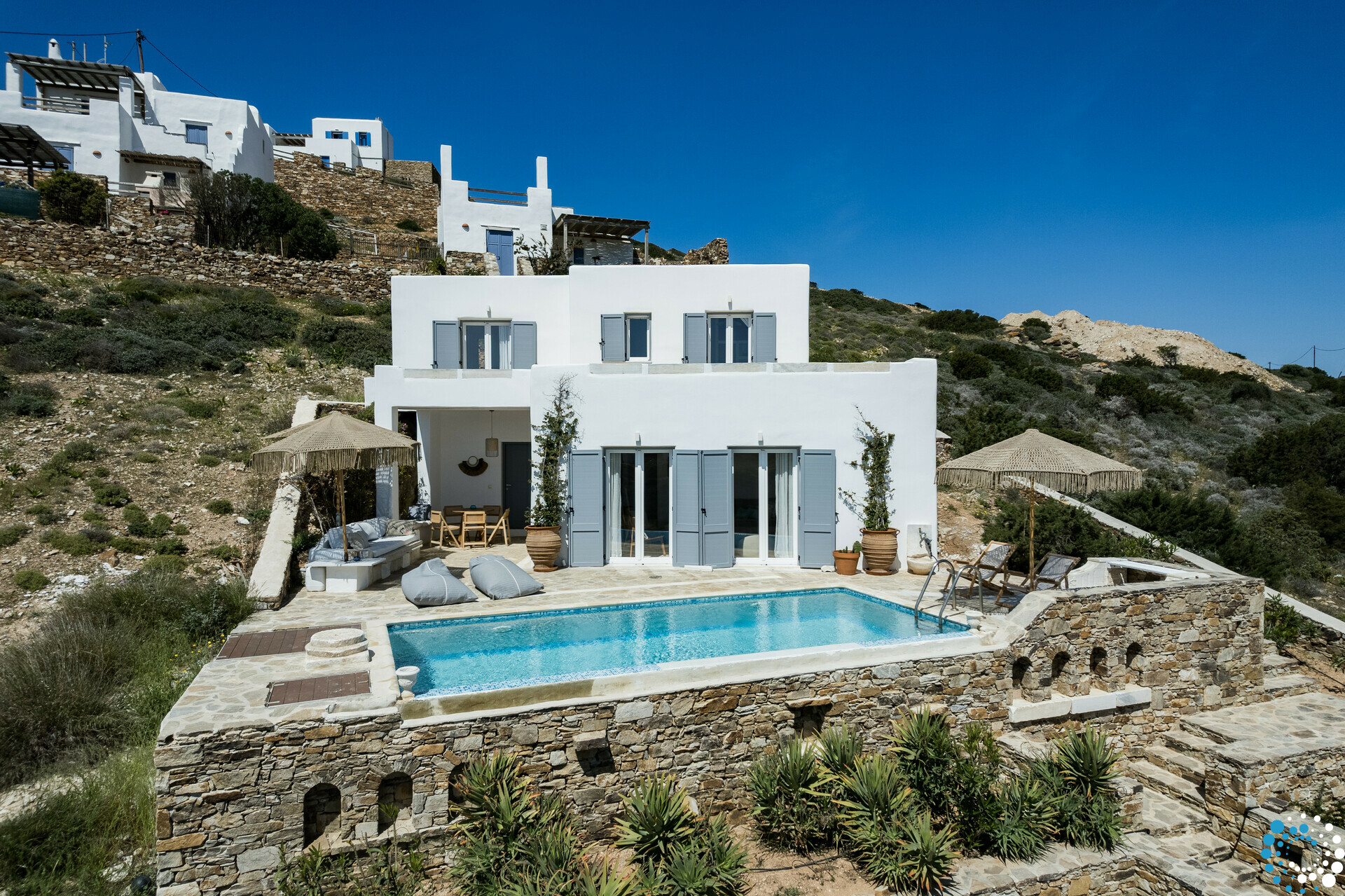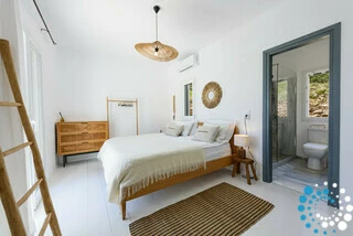 Située dans un coin isolé de l’île, cette villa est un véritable sanctuaire pour ceux qui recherchent détente et ressourcement. Avec ses eaux calmes et cristallines et son rythme de vie doux et paisible, Agios Georgios incarne l’essence d’une vie insulaire sans effort. Située à l’extrémité sud de l’île, au bout de la route, elle offre une échappée naturelle, préservée dans sa beauté intacte.