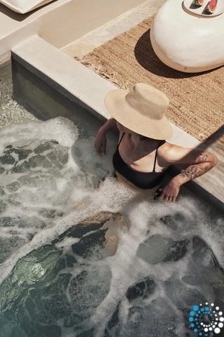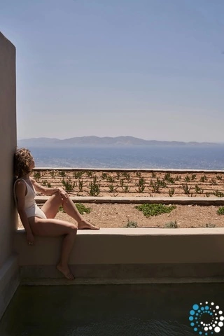Les clients peuvent se détendre au bord de l’impressionnante piscine à débordement, profiter du soleil sur la terrasse ou se promener dans les jardins luxuriants. La propriété comprend également un bar accueillant, des rafraîchissements au bord de la piscine, un coin café confortable, une salle de sport et des expériences bien-être sur mesure, toutes conçues pour favoriser une relaxation sans effort. Les espaces extérieurs permettent de savourer un verre au coucher du soleil tout en profitant de vues panoramiques sur la mer Égée.