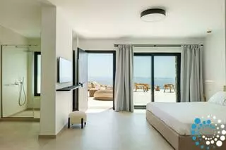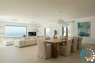 Répartie sur deux niveaux, elle peut accueillir jusqu’à 10 personnes dans ses cinq chambres doubles, chacune avec sa salle de bain attenante. À l’étage supérieur, deux chambres élégantes avec salle de bain disposent d’un accès privé à un balcon face à la mer. Au niveau de la piscine, vous trouverez une cuisine entièrement équipée, un espace gym et un salon ouvert avec coin détente. Trois chambres d’invités indépendantes avec leurs propres salles de bain s’ouvrent directement sur la terrasse du pool.