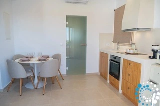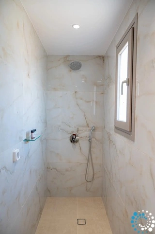Au rez-de-chaussée, vous trouverez une cuisine entièrement équipée avec table à manger et une salle de bain avec douche. À l’étage, la villa dispose d’une chambre avec lit double, salle de bain attenante et balcon privé offrant une vue imprenable. Au niveau inférieur, une deuxième chambre avec lit double et salle de bain attenante, ainsi qu’un espace buanderie avec machine à laver, planche et fer à repasser.
