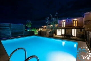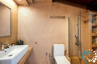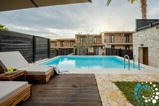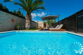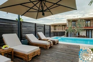 L’extérieur en pierre de la villa lui confère un caractère à la fois solide et élégant, créant une atmosphère intemporelle et raffinée. À l’extérieur, une piscine privée de 6 × 4 mètres, avec une profondeur de 1,5 mètre, constitue l’endroit idéal pour se détendre et profiter du soleil. Des chaises longues en bois et des parasols disposés autour de la piscine apportent une touche supplémentaire de confort et de luxe à votre séjour.