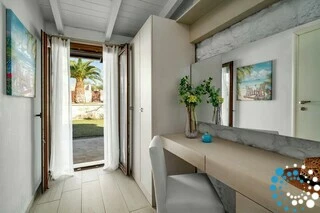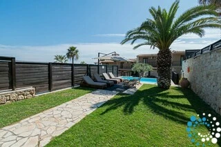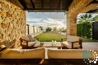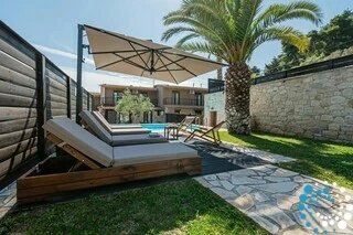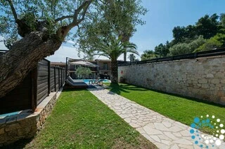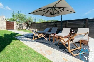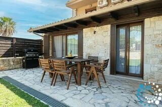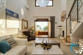 D’une superficie de 135 m² et implantée sur un vaste terrain de 6 600 m² entouré d’un mur traditionnel en pierre, la villa garantit à la fois intimité et tranquillité. Entièrement rénovée en 2018, elle combine des équipements modernes avec un design élégant, ce qui en fait un excellent choix pour les voyageurs recherchant des vacances relaxantes et confortables. À l’intérieur, le salon est décoré avec goût, tandis que la salle à manger séparée, la cuisine entièrement équipée et les toilettes pour invités offrent tout le nécessaire pour un séjour agréable et pratique.