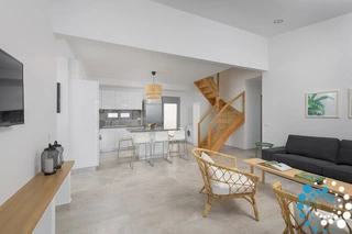 À l’intérieur, la villa allie chaleur et style avec confort. Le rez-de-chaussée abrite quatre chambres magnifiquement aménagées, chacune avec un lit double confortable et une salle de bain privée. La cinquième chambre, une mansarde sous le toit, dispose de sa propre salle de douche, parfaite pour les invités recherchant de l’intimité.
