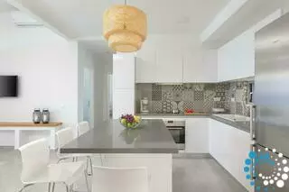 La cuisine moderne est entièrement équipée avec tous les appareils contemporains et dispose de grandes portes-fenêtres qui remplissent l’espace de lumière naturelle. Adjacent à la cuisine, le vaste salon est conçu pour la détente, avec de nombreux sièges et une télévision satellite de 40 pouces—idéal pour les soirées de divertissement ou pour profiter de la vue sur la terrasse et la piscine.