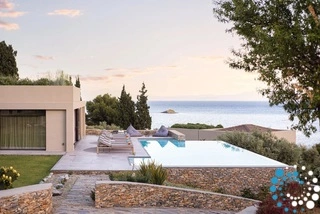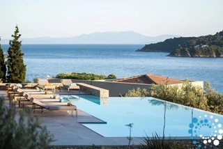 La villa est nichée sur la côte est de Skiathos, dans la baie d’Achladies, un village grec pittoresque qui conserve le charme d’un village de pêcheurs. La plage de sable forme une petite crique et est entourée de végétation luxuriante bordant des eaux cristallines. Située à 2 km de la capitale, elle offre un cadre relaxant avec de bons restaurants à proximité ainsi que des moyens de transport faciles (par route ou par mer) avec des taxis aquatiques permettant de rejoindre la ville de Skiathos.