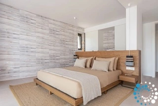 Le design minimaliste crée encore plus d’espace intérieur avec une chambre lumineuse et aérée donnant un accès direct à la terrasse, idéale pour se retirer après une soirée au bord de la piscine ou pour prendre le petit-déjeuner avec vue. La salle de bain moderne et magnifiquement conçue offre un espace enchanteur pour se revitaliser après une longue journée. La cuisine contemporaine est entièrement équipée pour cuisiner à domicile, et le salon baigné de lumière se révèle à la fois serein et sophistiqué, tout en restant extrêmement confortable. De grandes fenêtres et portes laissent entrer la lumière naturelle dans tous les espaces.