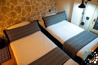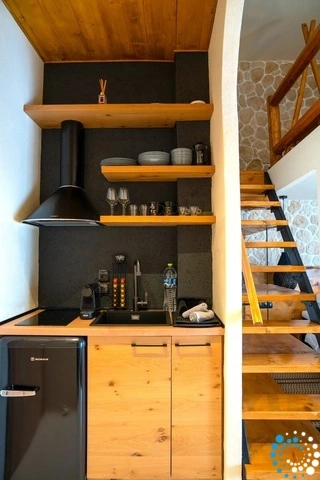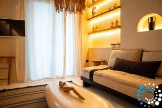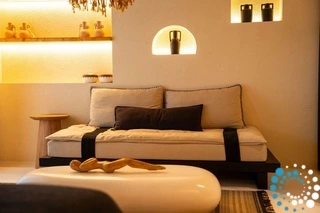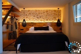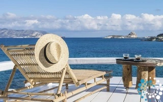 Cette suite de 40 m² présente un design ouvert avec un lit double, un canapé-lit et un escalier menant à un second niveau avec deux lits simples. Dotée d'une kitchenette et d'une salle de bain élégante, cette suite lumineuse et magnifique est l'endroit idéal pour se détendre et profiter de la clarté des Cyclades.
