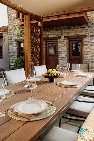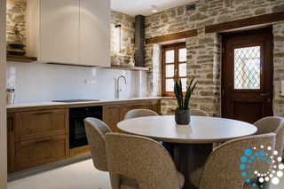 Une cuisine entièrement équipée associe charme traditionnel et équipements contemporains, tandis que le salon et la salle à manger, conçus avec une esthétique raffinée, créent une atmosphère conviviale propice aux moments partagés comme aux soirées calmes. L’un des points forts de la maison est l’espace bien-être intérieur avec un jacuzzi pour huit personnes, offrant une relaxation toute l’année dans un cadre serein.