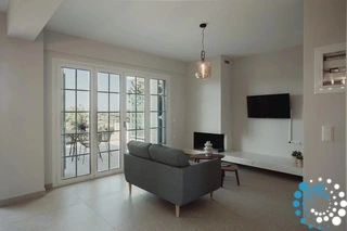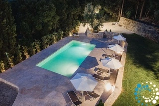 Un grand jardin et des places de stationnement spacieuses se trouvent à quelques pas de la terrasse de la villa. Une grande piscine et des transats sont disposés de manière à vous permettre de vous détendre, déguster un cocktail et profiter du soleil grec.