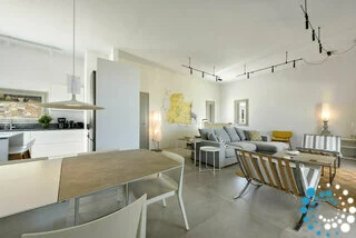 Le jardin méditerranéen soigneusement entretenu, composé de plantes aromatiques, d’oliviers et de vignobles, confère à la villa une atmosphère paisible. L’équipement et le mobilier ont été sélectionnés avec soin, incluant une literie COCOMAT, un mobilier épuré de Kartell, BoConcept et Van der Rohe, des luminaires Foscarini, du mobilier extérieur Ethimo, ainsi que des peintures et sculptures contemporaines.