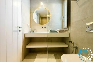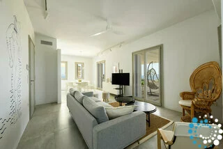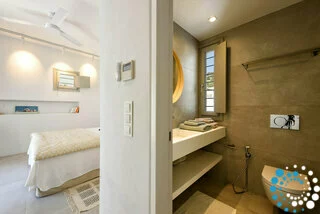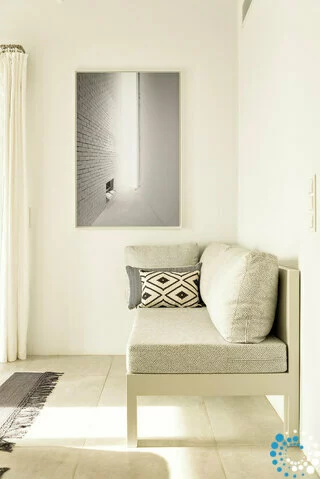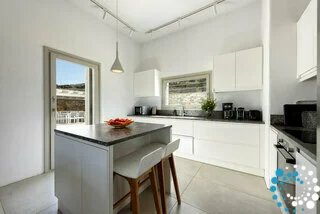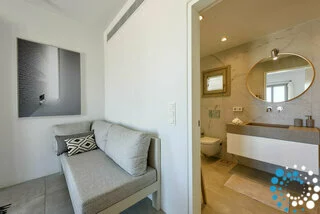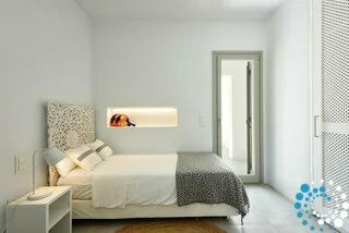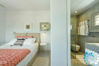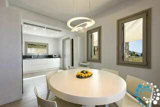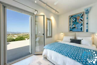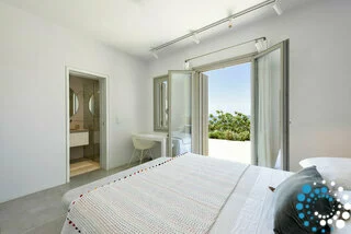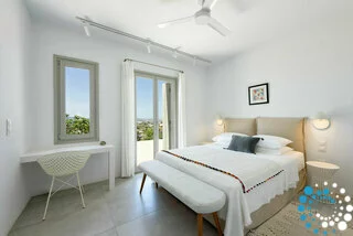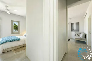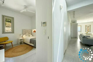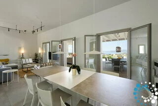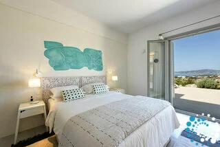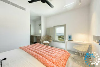 La villa présente un design cycladique géométrique à dominante blanche, soutenu par des matériaux et un mobilier de grande qualité. L’équilibre entre minimalisme et chaleur est souligné par des touches d’inspiration grecque à travers des œuvres d’art et des fresques. Parfaite pour les voyageurs appréciant le confort, la beauté naturelle et le style, la maison peut accueillir jusqu’à 11 personnes ainsi que des bébés.