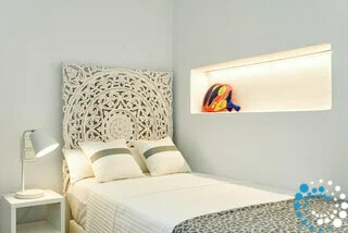 Au premier étage, accessible par un escalier extérieur indépendant, se trouve une chambre double séparée avec salle de bains privative et sa propre terrasse protégée du soleil par un auvent. Cet espace offre une grande intimité et une vue exclusive sur la mer.