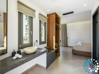 Situé dans l’un des quartiers les plus prisés de Mykonos, le domaine offre un parfait équilibre entre intimité et commodité. Les clients peuvent profiter d’une atmosphère sereine et isolée tout en étant à quelques minutes des attractions emblématiques de l’île.