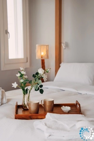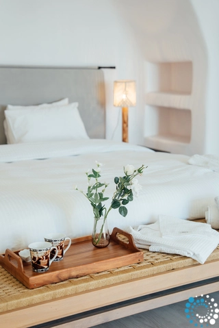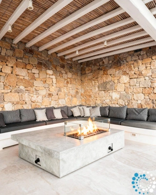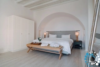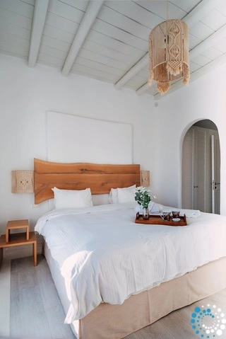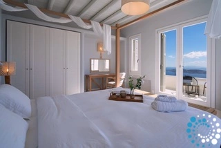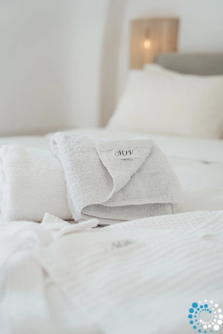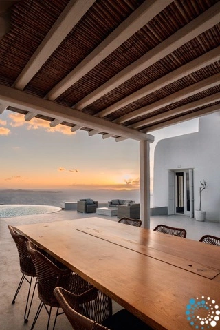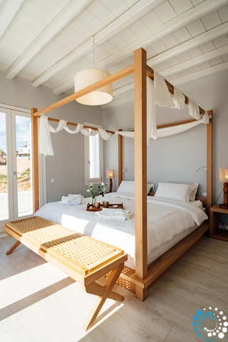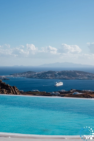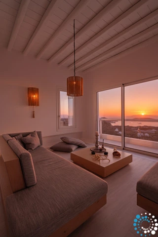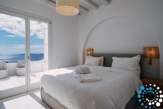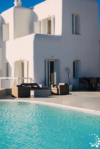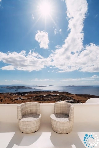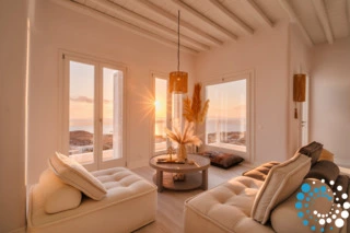 L’intimité préservée permet aux hôtes de profiter d’une retraite paisible tout en s’imprégnant de l’atmosphère emblématique de Mykonos.