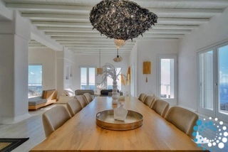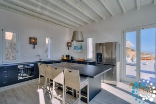 La villa peut accueillir confortablement jusqu’à 16 personnes, réparties sur trois niveaux : rez-de-chaussée, premier étage et deuxième étage. Le premier étage comprend un espace salon et salle à manger décloisonné avec de hauts plafonds, des toilettes invités et une cuisine entièrement équipée, le tout avec un accès direct à la piscine à débordement et à l’espace de détente. Le rez-de-chaussée comprend cinq chambres avec salle de bain attenante : trois chambres doubles avec vue sur la mer et deux chambres doubles avec salle de bain attenante. Le deuxième étage comprend une suite parentale avec vue sur la mer, salle de bain attenante et balcon privé, ainsi que deux chambres doubles avec balcons privés et une grande salle de bain commune.