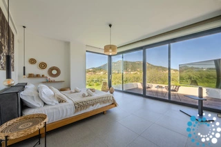 À l’étage, la villa comprend trois chambres : une suite parentale avec salle de bains privative, dressing, TV et balcon privé avec vue panoramique ; une deuxième chambre double avec balcon ; et une chambre twin convertible en double avec TV. Une deuxième salle de bains et un espace buanderie sont également disponibles.