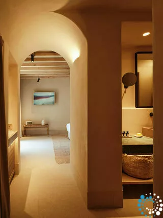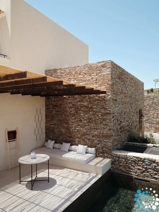 Ontworpen met intimiteit, rust en elegantie in gedachten, is dit hotel een vredige schuilplaats doordrenkt met de gracieuze charme en het handgemaakte vakmanschap van het eiland, waar gasten in alle comfort kunnen genieten van de prachtige natuurlijke omgeving. Heldere, ruime interieurs openen naar besloten binnenplaatsen, terrassen en balkons voor een naadloze binnen/buitenervaring. Natuurlijke materialen, aardse texturen en handgemaakte details vormen een ingetogen esthetiek van verfijnde eenvoud, aangevuld met moderne voorzieningen voor een ontspannen, rustgevende sfeer die je meteen thuis doet voelen.