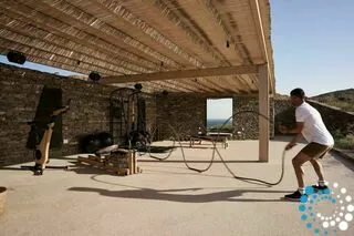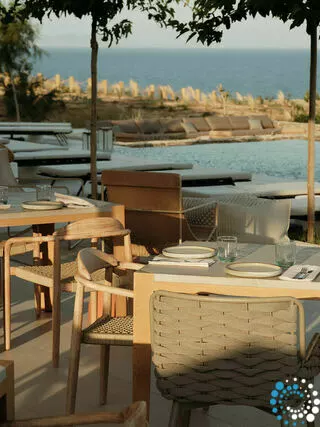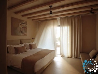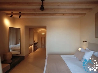 Zachte tinten van beige, zand en crème creëren een serene en gastvrije sfeer, terwijl natuurlijke steen- en houtaccenten, weelderige textielsoorten en ambachtelijk keramiek de authentieke charme van het eiland weerspiegelen. De open woon- en slaapruimte is licht en luchtig, aangevuld met een ruime badkamer die zowel privacy als ontspanning biedt. Uitgestrekte veranda’s bieden adembenemende uitzichten op de zee en de tuin, ideaal om buiten te loungen, te dineren in de openlucht of te genieten van de Aegeïsche zon in de privacy van uw eigen zwembad.