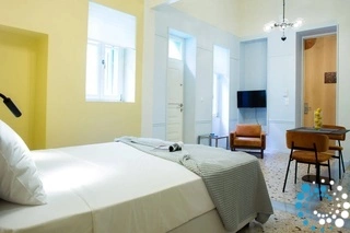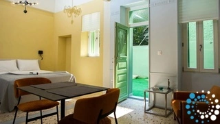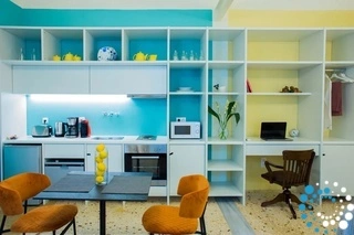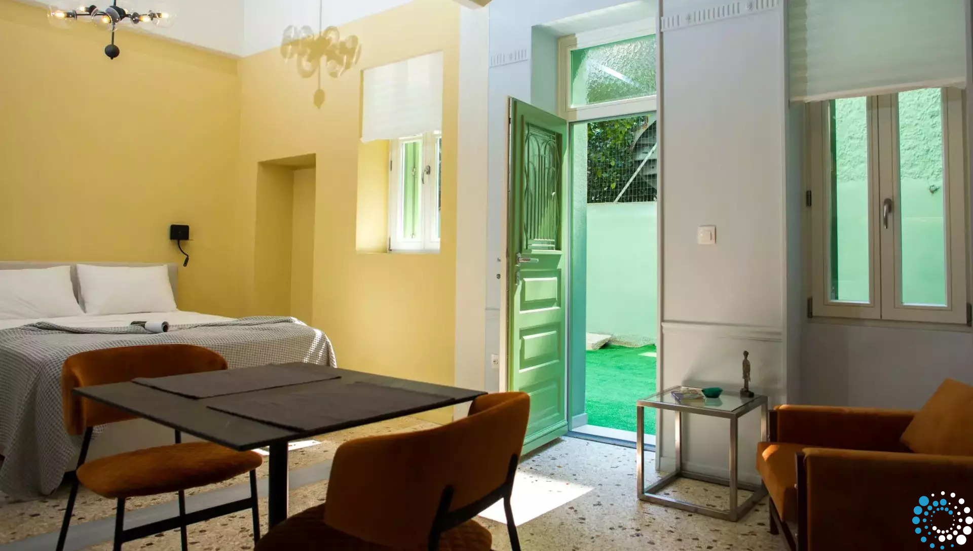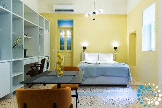 A studio that feels like a whole apartment, consisting of the bed zone, the kitchen zone and the living zone, all under 1 roof with the ceilings at 4,75 meters. More spacious than many apartments and with a bathroom more spacious than you can imagine. A desk will allow any remote worker to spend some time (hopefully a very little amount!) working using the ADSL high speed Internet. The deluxe CANDIA STROM mattress will make your sleep a totally new experience. Enjoy the perfect atmosphere thanks to the apartment’s powerful A/C unit.