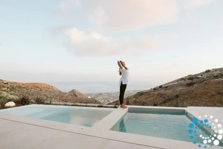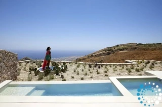 Gelegen op de hellingen van de hoogste heuvel van Santorini biedt dit toevluchtsoord een sereen en zeer privé alternatief voor de klassieke accommodaties met calderazicht in Oia