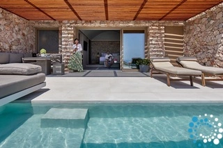 Op slechts een paar minuten van het centrum van Pyrgos biedt deze gloednieuwe suite een ontspannende oase om helemaal van uzelf te maken. Deze ongelooflijke suite is uit de bergwand gehouwen om een adembenemend unieke ervaring te creëren. Geniet van panoramische schuiframen, ultrahoge luxeafwerking en een spectaculaire inloopdouche met een panoramisch dakraam erboven. Het privéterras buiten beschikt over een eetgedeelte, loungeset en een verwarmd zwembad.