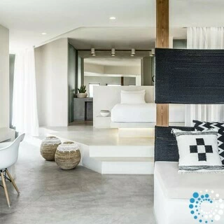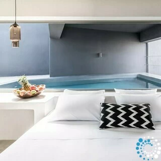 Suite Hydrothoe maakt deel uit van een luxe hotel, zorgvuldig ontworpen door zijn architect-eigenaren om te herdefiniëren wat een reisverblijf kan zijn—en biedt een werkelijk unieke woonervaring.
