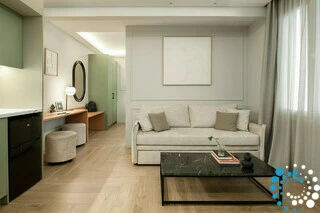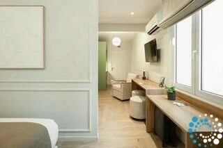 Omringd door de echo’s van de Atheense geschiedenis en cultuur, combineert het gebouw een stedelijk karakter met moderne designgevoeligheid. De interieurs zijn zorgvuldig ingericht in kalmerende tinten van bosgroen en olijf, waardoor een serene sfeer ontstaat die een verfijnde visie op stadsleven weerspiegelt.
