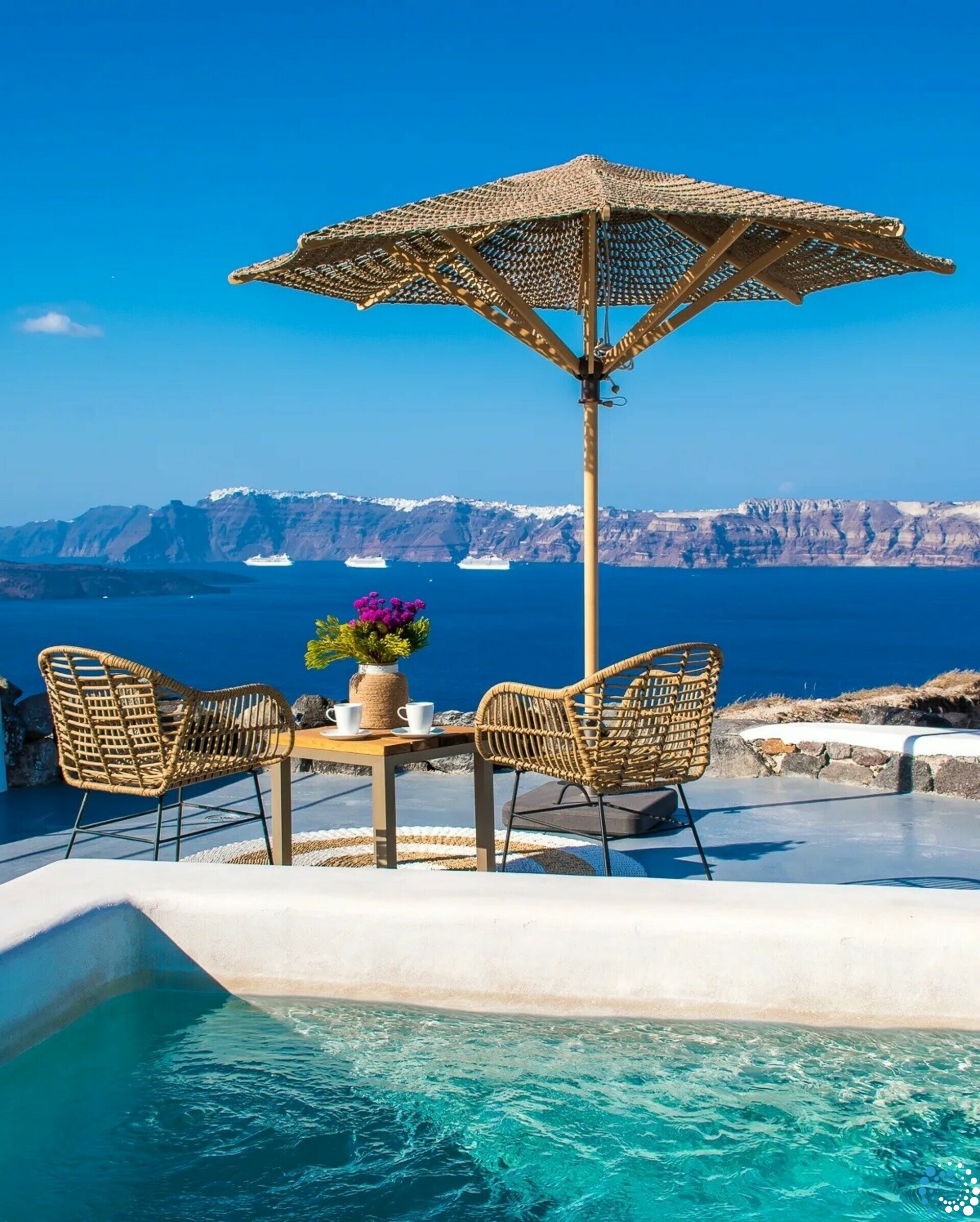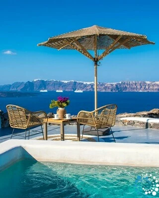 Gasten kunnen ontspannen in twee gedeelde infinity-zwembaden met uitzicht op de caldera of zich terugtrekken in hun eigen privé-dompelbad voor een meer afgezonderde ervaring. Of u nu ontspant met een boek, al fresco dineert of geniet van Santorini-wijn bij zonsondergang, elk moment wordt omlijst door buitengewone natuurlijke schoonheid.