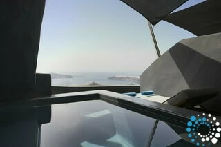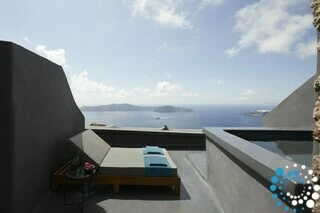 Stel u dit voor: een onvergetelijk panoramisch uitzicht van 180 graden dat zich voor u ontvouwt en de hele baai en caldera omarmt. Uw blik wordt meteen getrokken naar Skaros Rock – de overblijfselen van de oude akropolis van Santorini – die dapper oprijst uit een solitaire rotsformatie in het water. Wanneer u verder kijkt, ziet u spectaculaire zonsondergangen en een volledig uitzicht op de iconische vulkaan van Santorini.