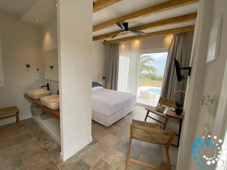 Ontdek deze woning, een unieke toevluchtsoord in het hart van Pollonia, waar elk studio, suite en het unieke appartement zorgvuldig is ontworpen om verbeelding en comfort te stimuleren. Door de tijdloze elegantie van de Cycladische architectuur te combineren met moderne voorzieningen, vertelt elke kamer zijn eigen verhaal van stijl en verfijning.
