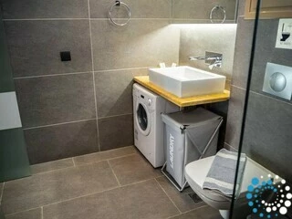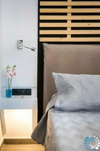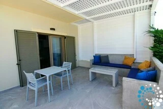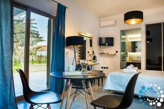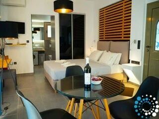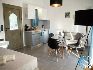 Binnen beschikt de suite over een open slaapkamer met een volledig uitgeruste kitchenette, inclusief een kookplaat, een kleine koelkast/vriezer, een eettafel en alle essentiële apparaten en keukengerei om zelf maaltijden te bereiden. Een gezellige sofa kan eenvoudig worden omgevormd tot een klein bed, geschikt voor één kind tot zes jaar zonder extra kosten. Het hoofdslaapgedeelte beschikt over een queensize bed met anatomisch matras, nachtkastjes met verborgen verlichting en een strakke zwarte dubbele spiegel schuifkast die een moderne touch geeft. Een eigen badkamer is voorzien van een luxe douche, ingebouwde voorzieningen en een wasmachine voor extra gemak.