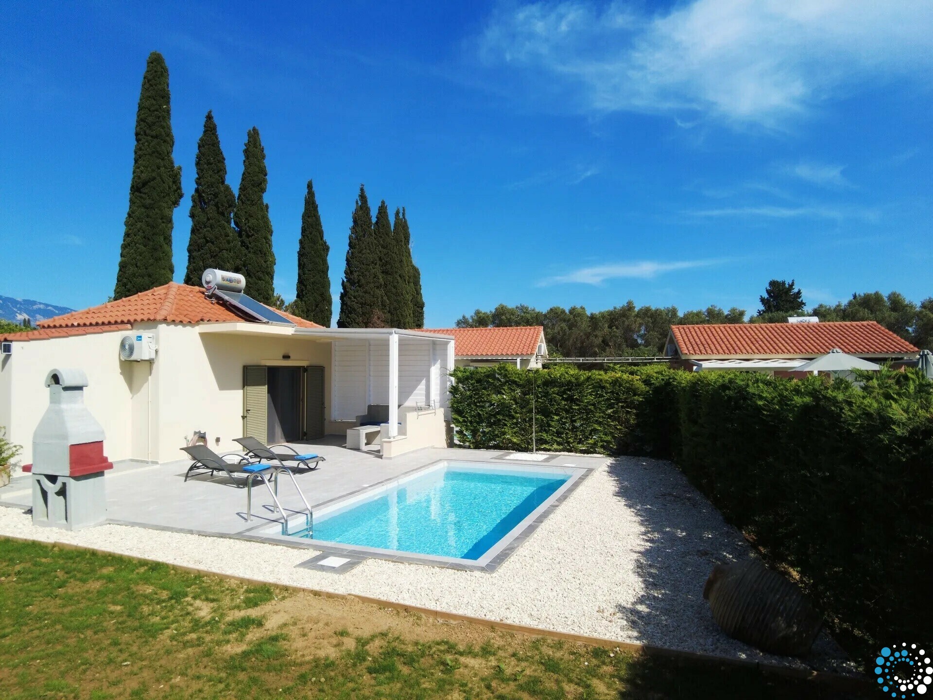 Suite Thinaia is een charmante retraite binnen Cypress Garden Villas, een rustig complex van vijf zelfstandige vakantiehuizen, elk met een eigen privézwembad, gelegen in het pittoreske dorp Svoronata, op slechts 4 km van de internationale luchthaven van Kefalonia. Gelegen op meer dan een acre natuurlijke landschap, wordt het pand omgeven door moerbeibomen, oude cipressen en olijfgaarden, wat een vredige ontsnapping biedt in het hart van het eiland.