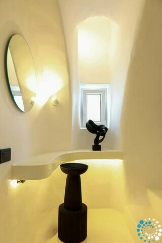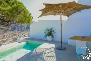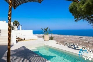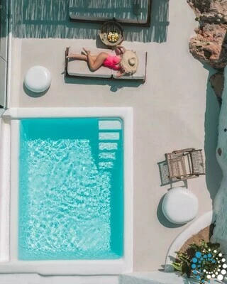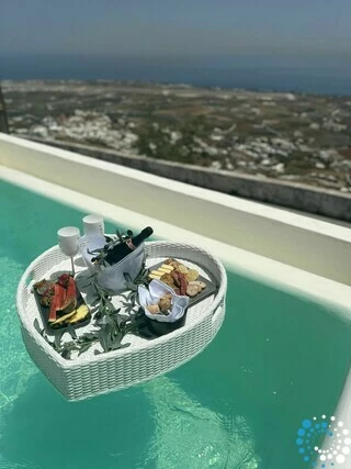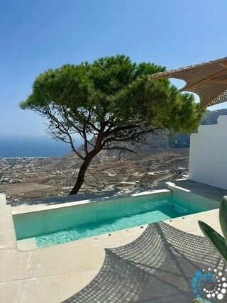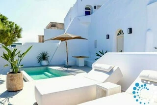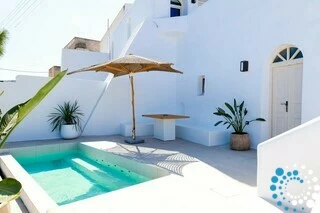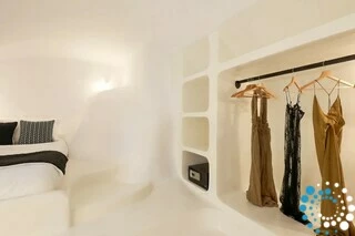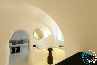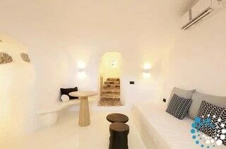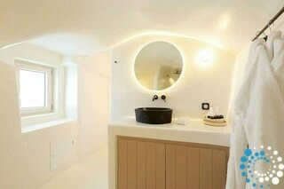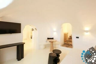 Door traditionele Cycladische architectuur te combineren met moderne, boho-geïnspireerde elegantie, is de suite ontworpen in zachte pastelkleuren en natuurlijke houtaccenten die een kalme, uitnodigende sfeer creëren. Minimalistische witgekalkte details en warme texturen komen samen tot een verfijnde maar ontspannen esthetiek.