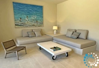 Perfect voor maximaal 4 volwassenen, dit elegante 1-slaapkamer toevluchtsoord biedt een kingsize bed, een ruime woonkamer met ingebouwde slaapbanken en twee moderne badkamers met inloopdouches. Geniet van het gemak van een volledig uitgeruste kitchenette en stap naar buiten op je privéterras met ligstoelen, een eethoek in de open lucht en stijlvolle loungeset. Omgeven door weelderige tuinen en gelegen op een rustige heuvel, biedt dit toevluchtsoord adembenemend zeezicht en een privézwembad – jouw eigen stukje paradijs.