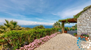 The garden, with large terraces, and lush with olive trees, oleanders and flowers, spreads out on two levels in front of the villa, inviting the guests to enjoy swimming in the pool, dining under the shady pergola, sunbathing in the shade of the olive trees and unparalleled views from anywhere they stand.