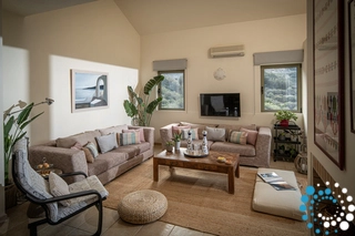 De gezellige woonkamer (37 m2), een combinatie van een zitgedeelte met een eethoek en een volledig uitgeruste keuken. Het beschikt over comfortabele zit meubelen; 28 "lcd-tv, home cinema / stereo, gratis Wi-Fi-verbinding, een telefoon en een open haard. De villa is goed geïsoleerd en volledig voorzien - airconditioning. Zijn oriëntatie (zuid naar zuidwest) en het feit dat het heeft grote ramen, stelt de ideale hoeveelheid zonneschijn voor het hele seizoen en biedt een adembenemend uitzicht op groene tuinen en de baai (zijdelings uitzicht op zee), het oproepen van rust.