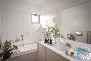 Villa Arabela heeft drie comfortabele kamers met eigen badkamer. Twee van de slaapkamers gastheer een toilet / douche -badkamer en-suite, terwijl de rest van het huis wordt bediend door een bad-badkamer. Alle badkamers zijn betegeld met wit marmer.