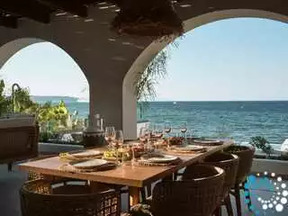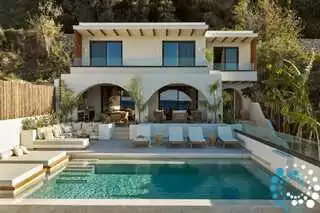 Verheven boven het fonkelende water van de Ionische Zee, biedt dit verfijnde toevluchtsoord panoramische uitzichten op Zakynthos-stad en de eindeloze horizon, waardoor het de ideale plek is voor wie op zoek is naar elegantie, rust en onvergetelijke uitzichten.