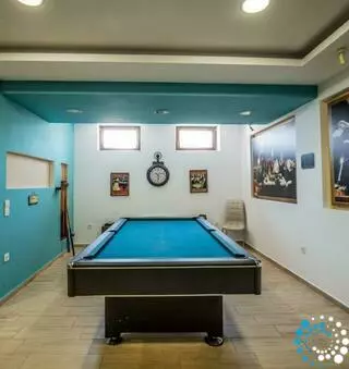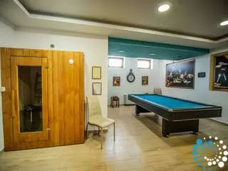 Bij de semi-kelder / begane grond is er de speelkamer van 45m2 met een Pool tafel; Twee-persoons sauna; bioscoop met 6 zetels; Toilet, wasmachine-droger; Mini wijnkelder. Op hetzelfde niveau is er een studio van 25m2 met een tweepersoonsbed, een badkamer en een televisie.
