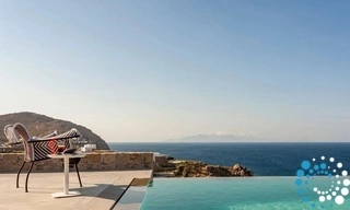 Gelegen op een perceel van 4.000 vierkante meter, gedeeld met zijn zustervilla, biedt Villa Axinite een privé toevluchtsoord op slechts 300 meter van het ongerepte zand van Elia Beach, met betoverende uitzichten op de fonkelende Egeïsche Zee.